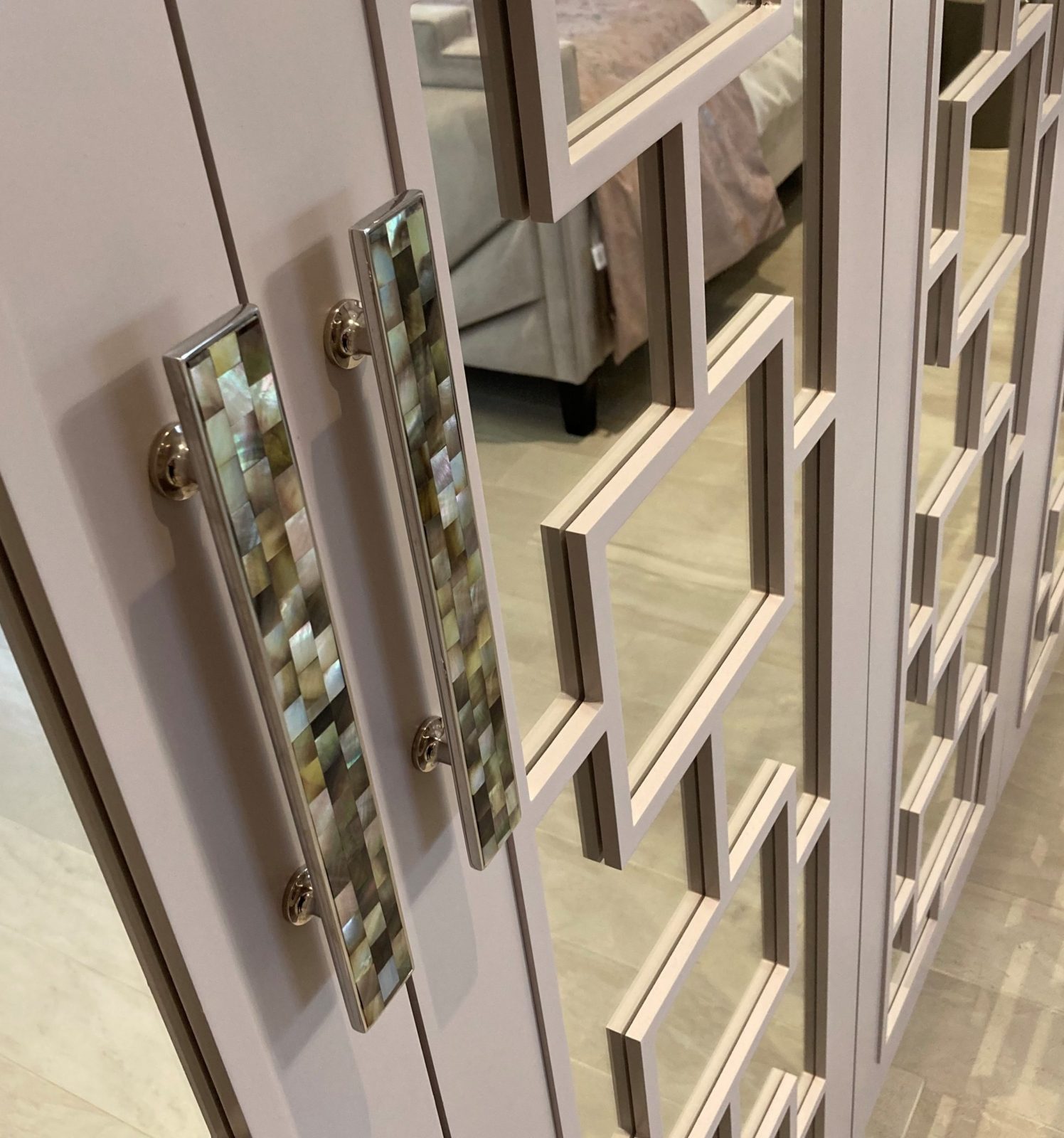 Each door is fitted with a 4mm mirror glued in place and the fret work is removable if your ordering unfinished or primed white finish – both finishes are sanded.